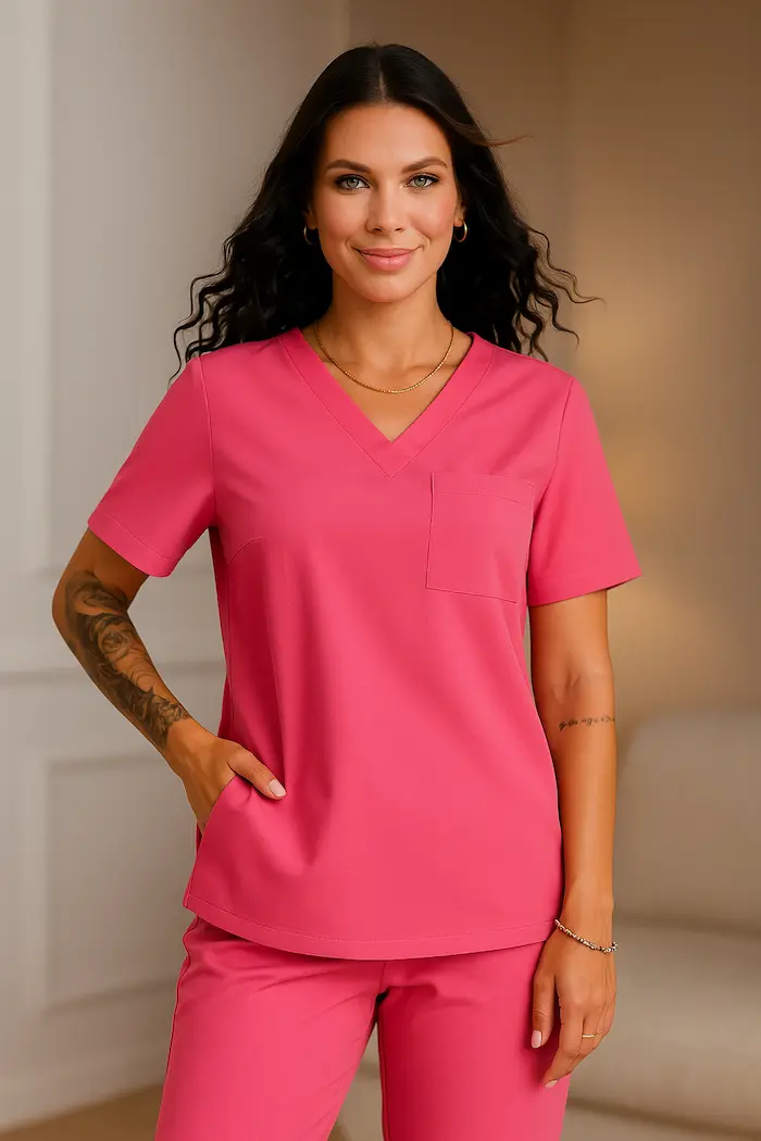 Bluzka Auria została stworzona dla osób pracujących w ciągłym ruchu, które chcą czuć się komfortowo, a jednocześnie elegancko. To doskonały wybór dla lekarzy, kosmetologów, weterynarzy oraz wszystkich profesjonalistów, którzy dbają o swój wizerunek w pracy.