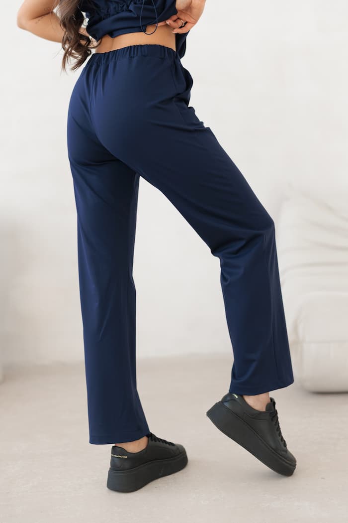 Komplet wykonany z nowoczesnej mieszanki włókien: 78% poliester, 19% wiskoza, 3% elastan – tkanina jest elastyczna, szybkoschnąca, odporna na zagniecenia i częste pranie.